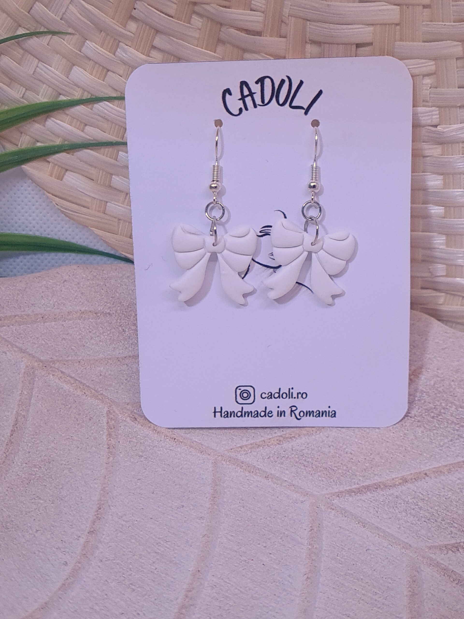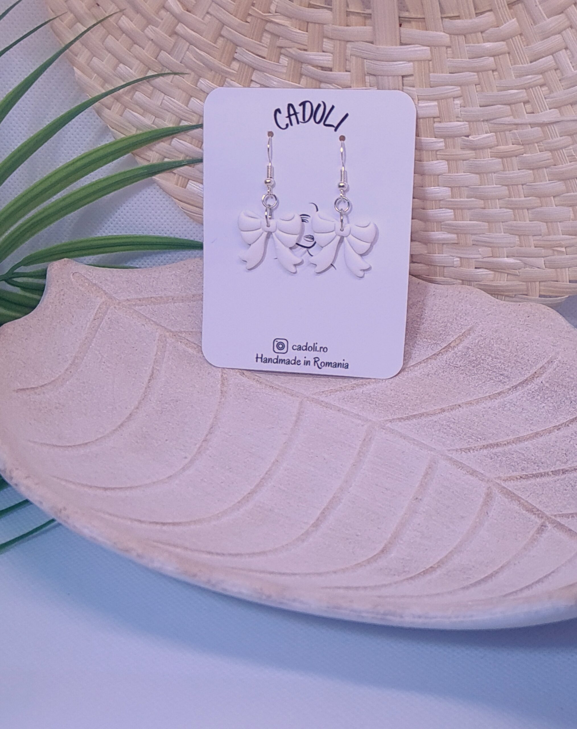 Răsfață-ți stilul cu o pereche de cercei inspirată de delicatețea unei funde, creați manual din pastă polimerică. Fiecare piesă este lucrată individual, reflectând echilibrul perfect între artă, precizie și feminitate.