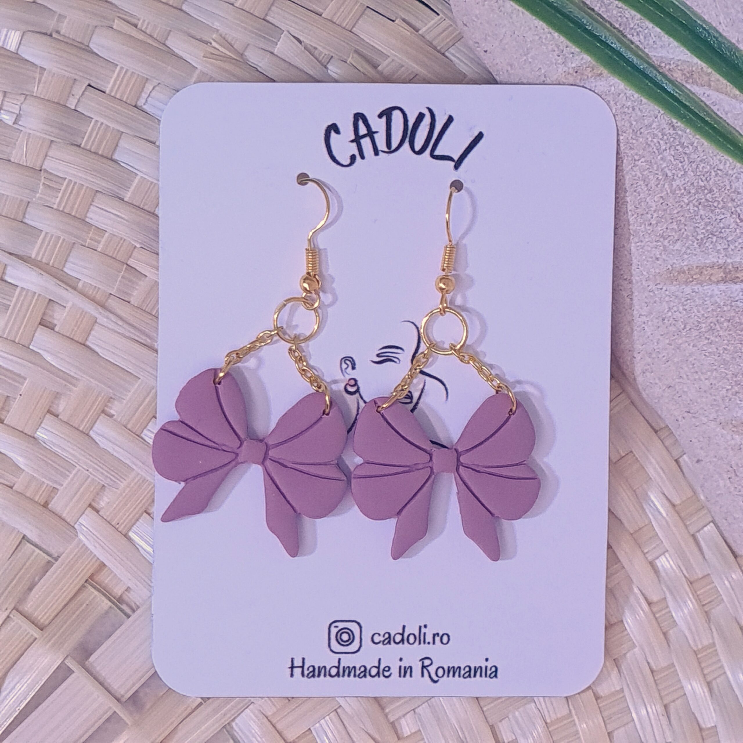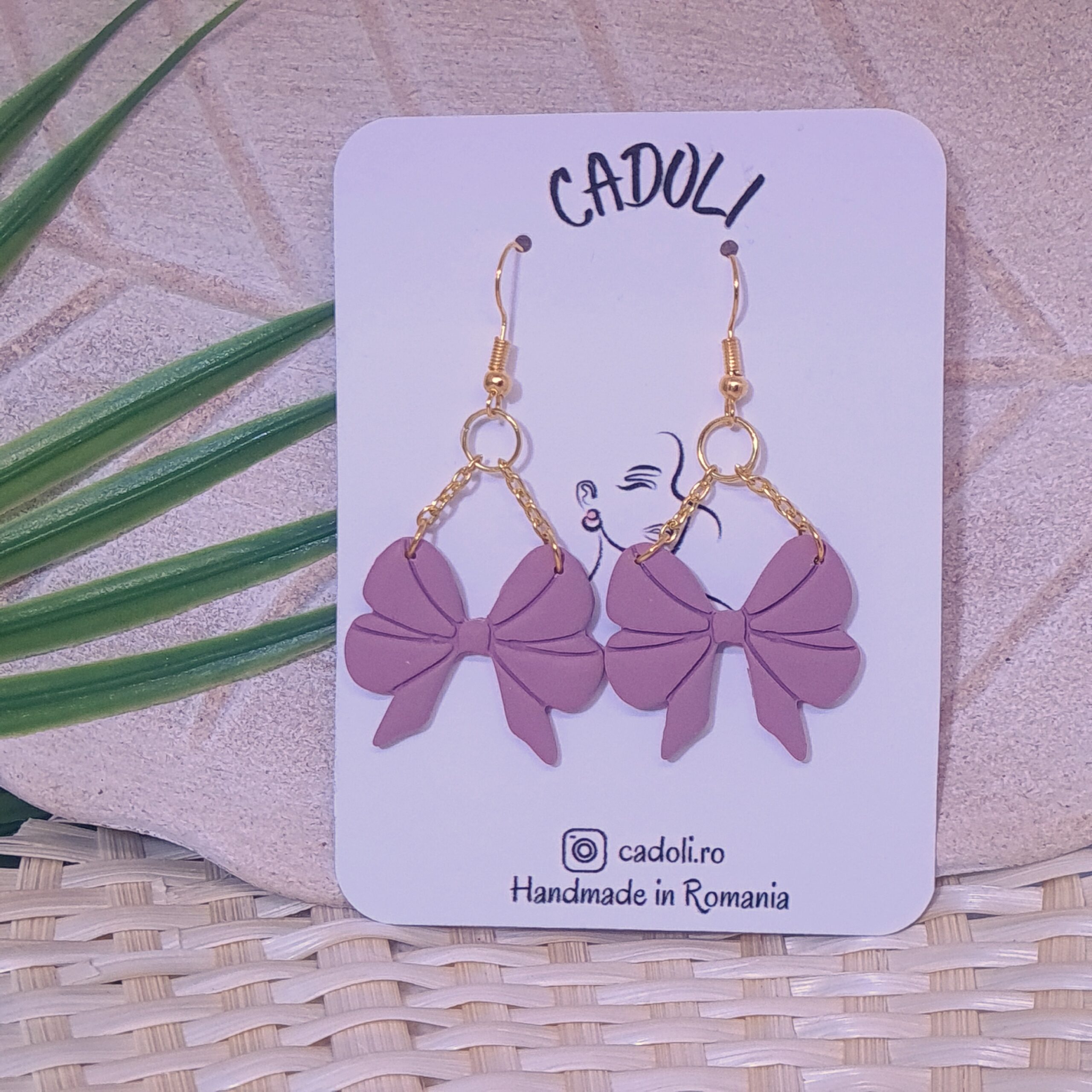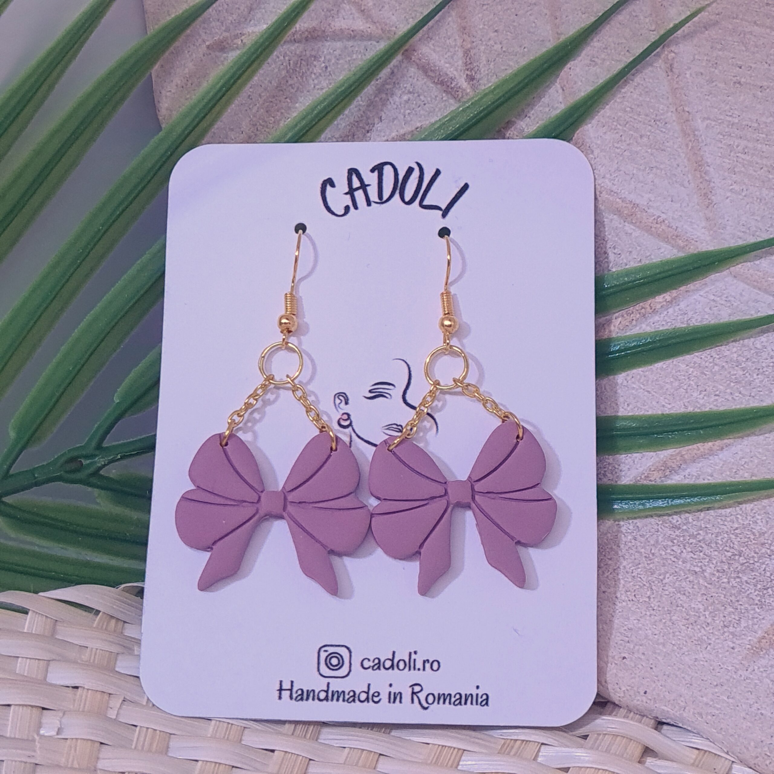 Răsfață-ți stilul cu o pereche de cercei inspirată de delicatețea unei funde, creați manual din pastă polimerică. Fiecare piesă este lucrată individual, reflectând echilibrul perfect între artă, precizie și feminitate.