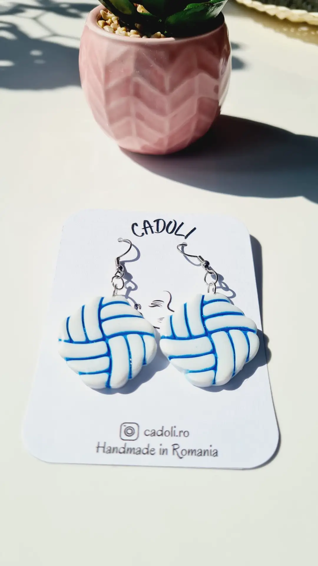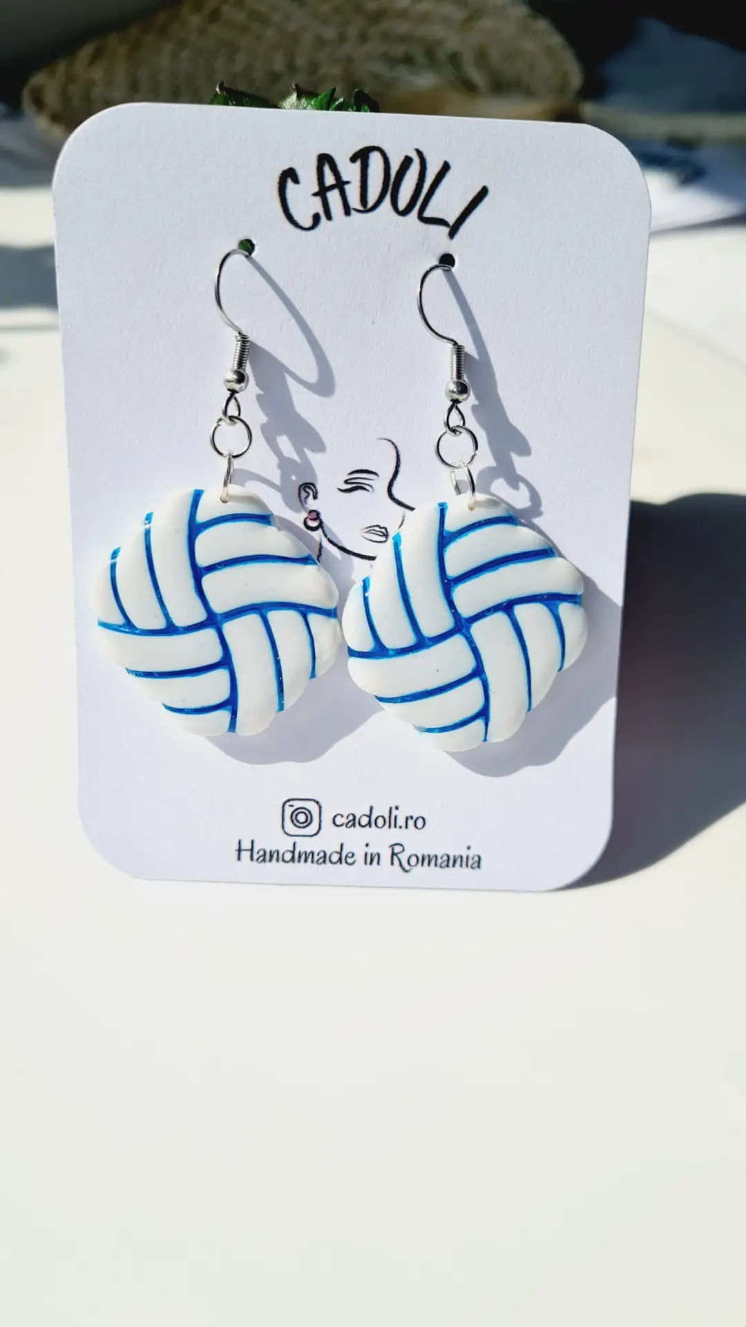 Răsfață-ți stilul cu o pereche de cercei creați manual din pastă polimerică. Fiecare piesă este lucrată individual, reflectând echilibrul perfect între artă, precizie și feminitate.