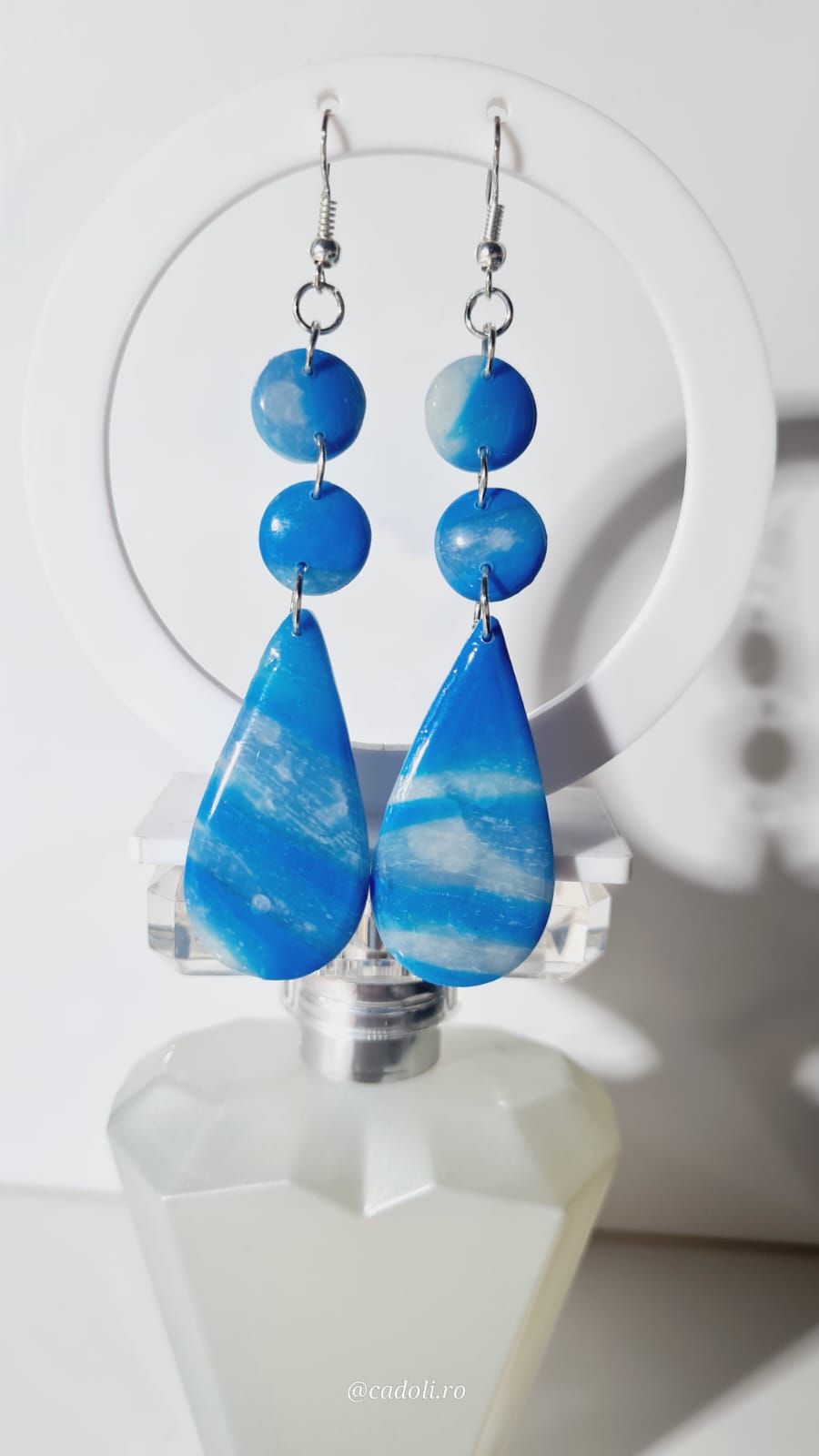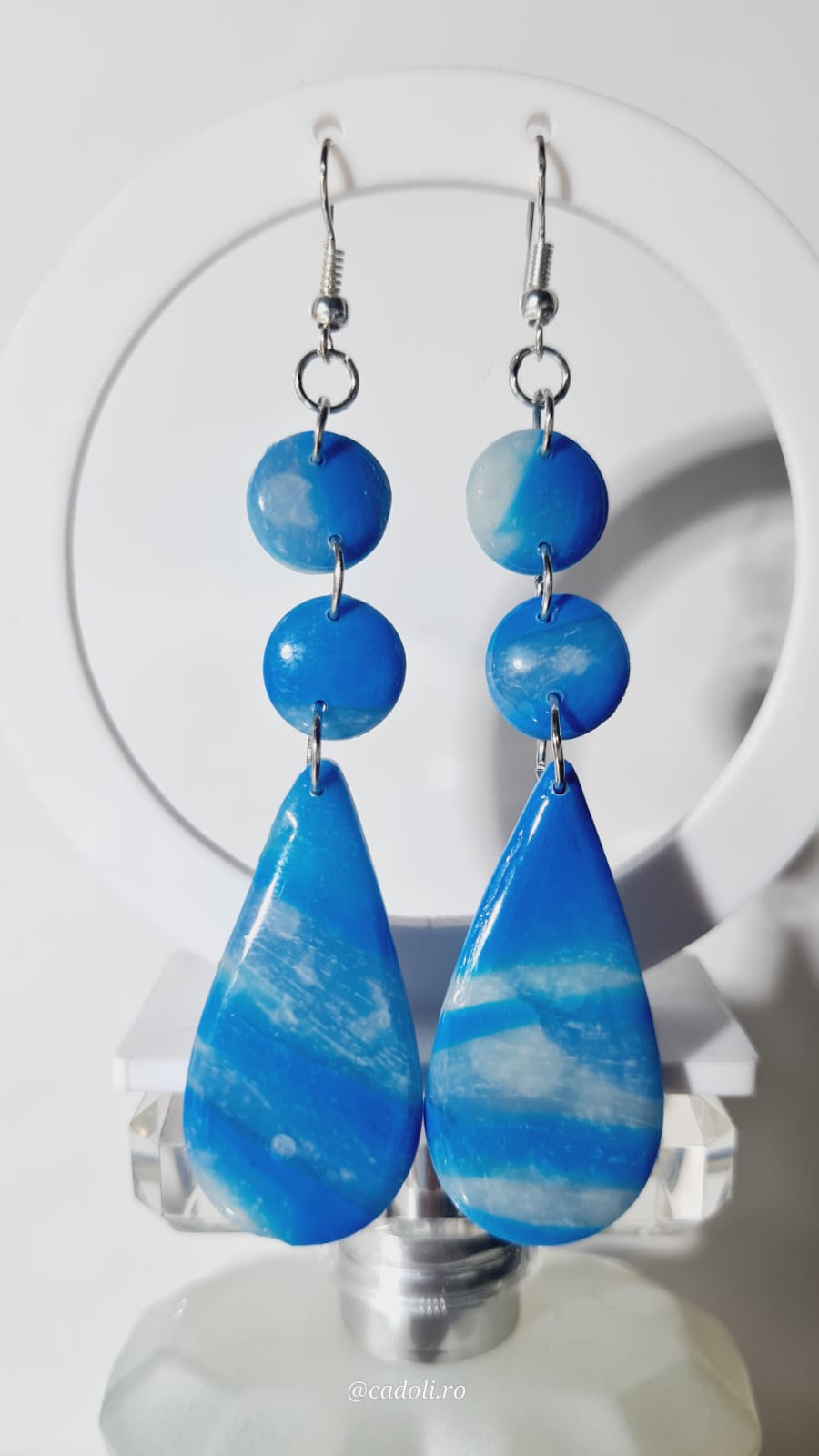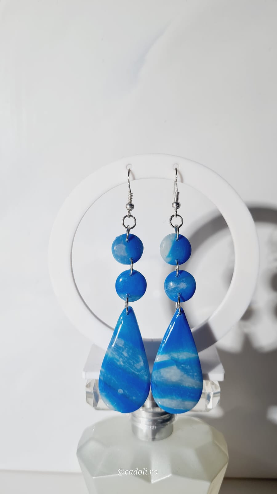 Răsfață-ți stilul cu o pereche de cercei creați manual din pastă polimerică. Fiecare piesă este lucrată individual, reflectând echilibrul perfect între artă, precizie și feminitate.