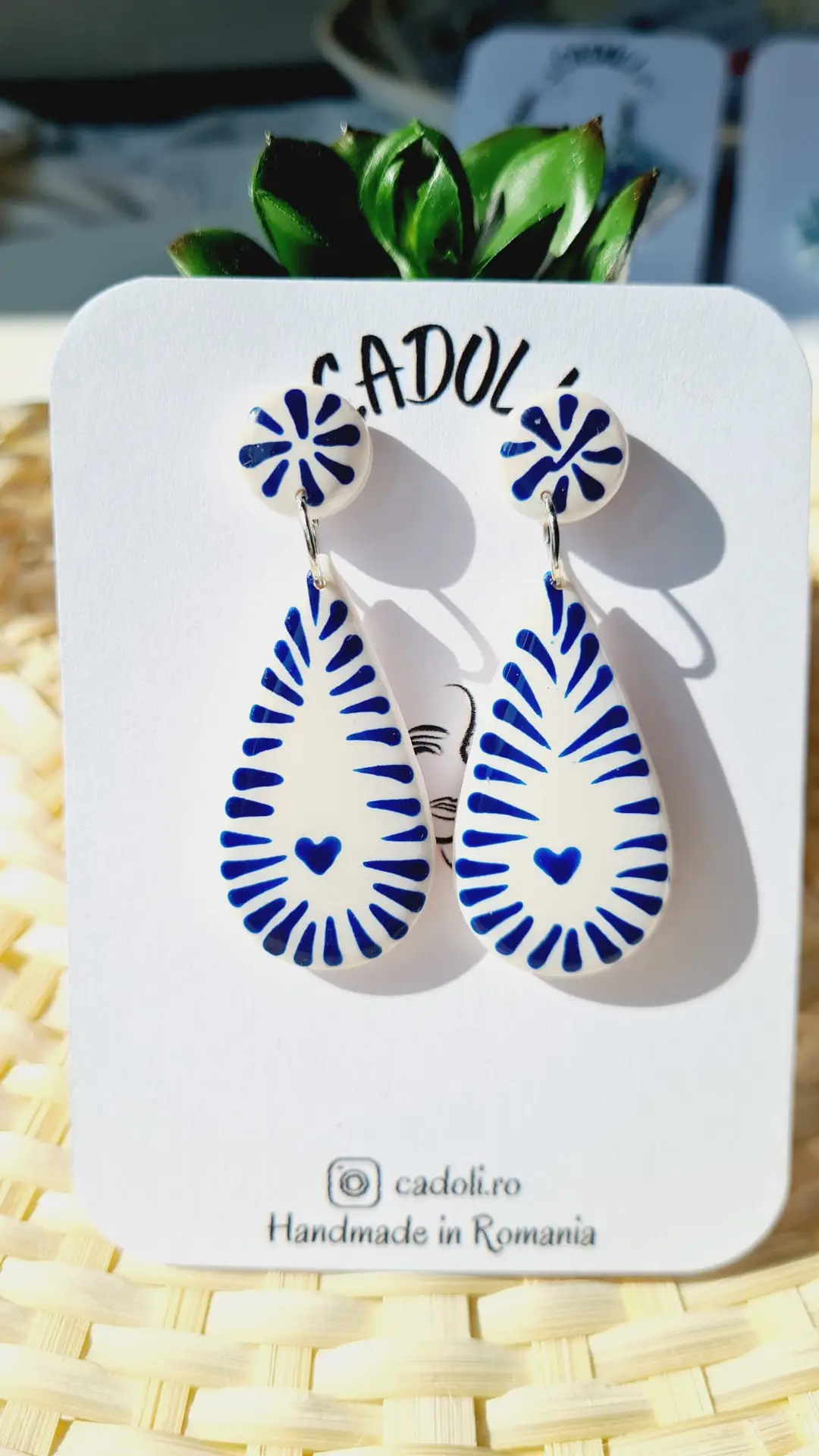 Răsfață-ți stilul cu o pereche de cercei creați manual din pastă polimerică. Fiecare piesă este lucrată individual, reflectând echilibrul perfect între artă, precizie și feminitate.