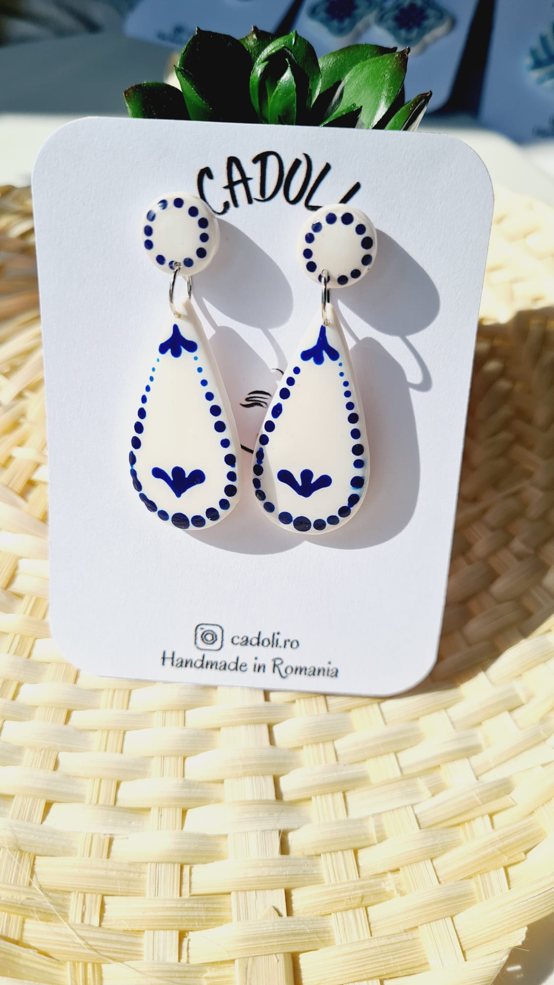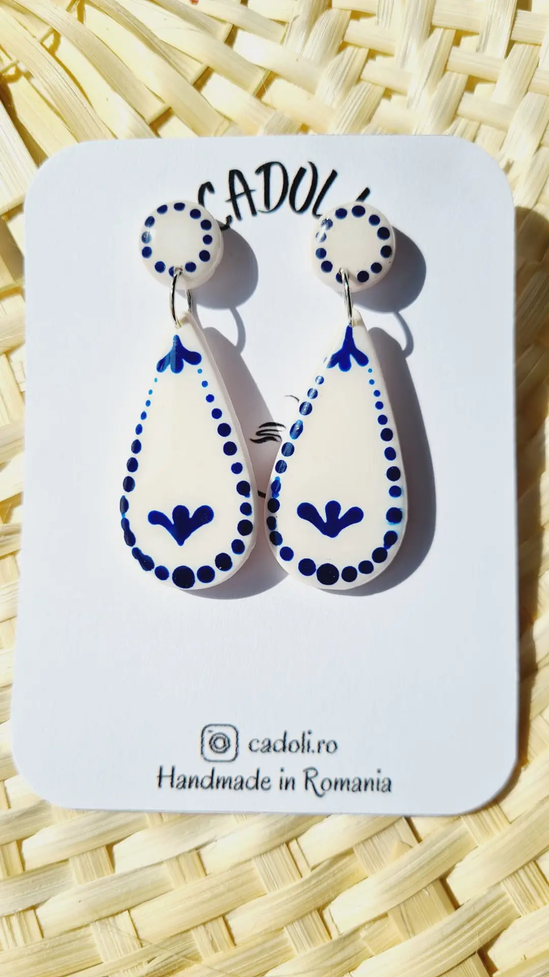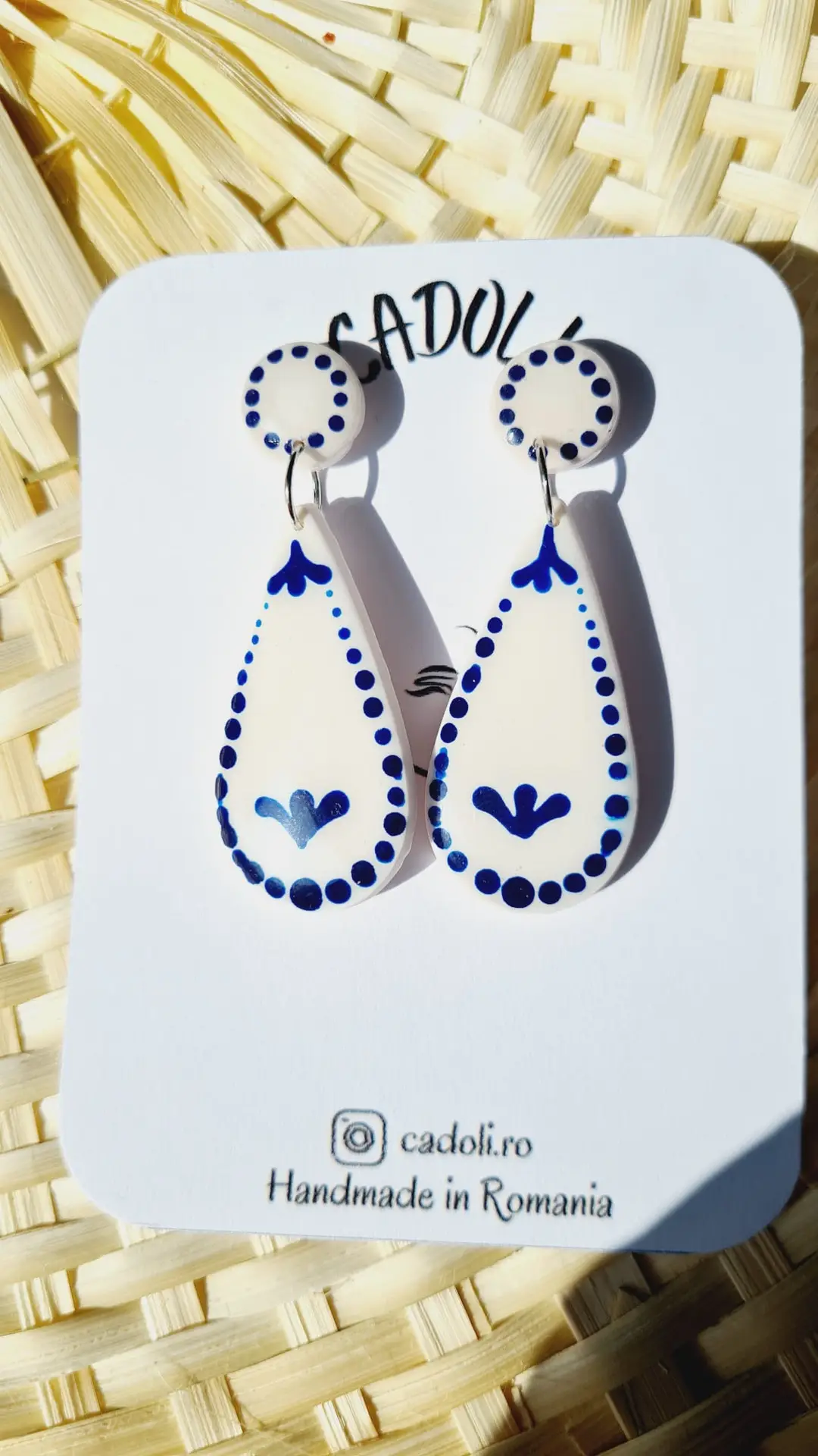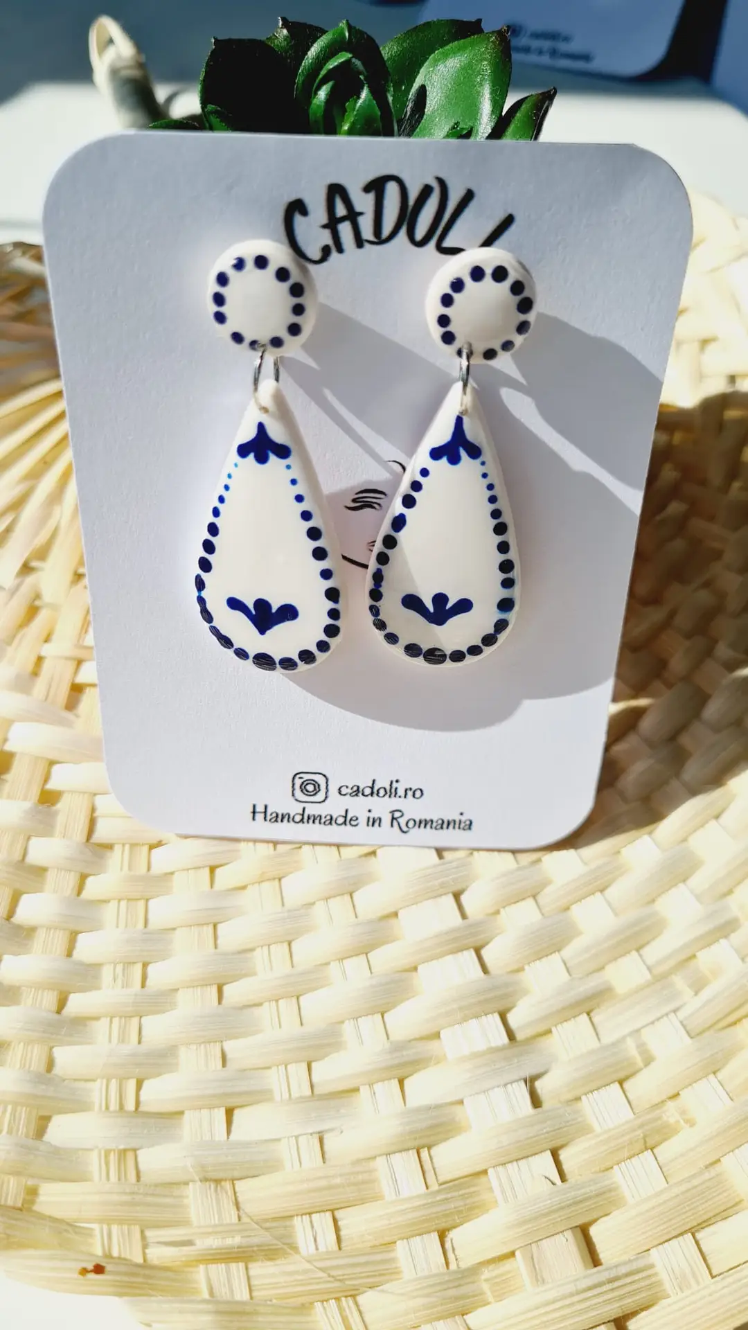 Răsfață-ți stilul cu o pereche de cercei creați manual din pastă polimerică. Fiecare piesă este lucrată individual, reflectând echilibrul perfect între artă, precizie și feminitate.