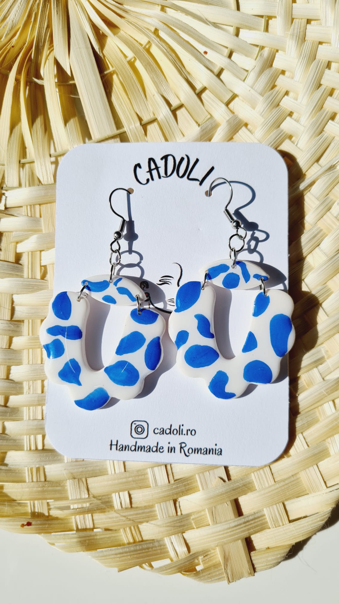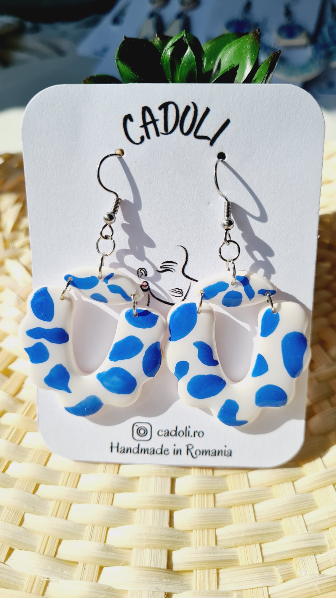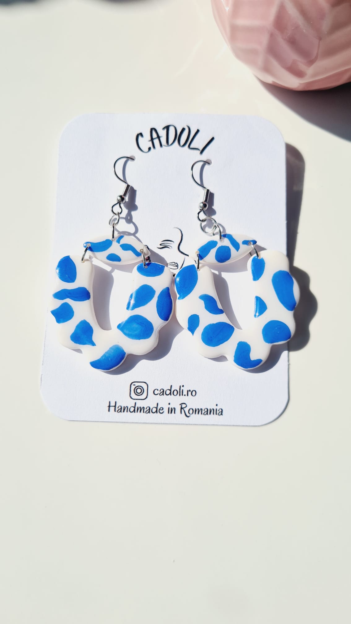 Răsfață-ți stilul cu o pereche de cercei creați manual din pastă polimerică. Fiecare piesă este lucrată individual, reflectând echilibrul perfect între artă, precizie și feminitate.